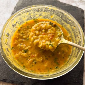 I decided to make this comforting Indian staple, dal tadka, in the microwave and there is no looking back! It’s a simple recipe, but just requires a fair amount of soaking the dal to help everything cook evenly. It’s warm, hearty, and just like the pressure cooked and stovetop version.