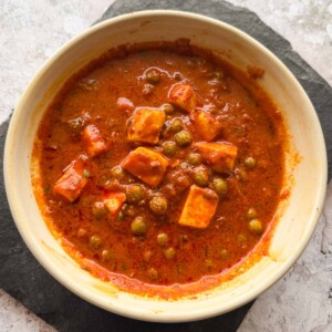 How cool it is that you can make restuarant-style matar paneer masala in the microwave!! This microwave recipe just completely blew my mind! This microwave version has the same creamy, mildly spiced curry along with the softest pieces of paneer and green peas. It’s a simple recipe that does not compromise on taste at all. I made this for a gathering recently and none of my friends could guess that this wasn’t made the traditional way!